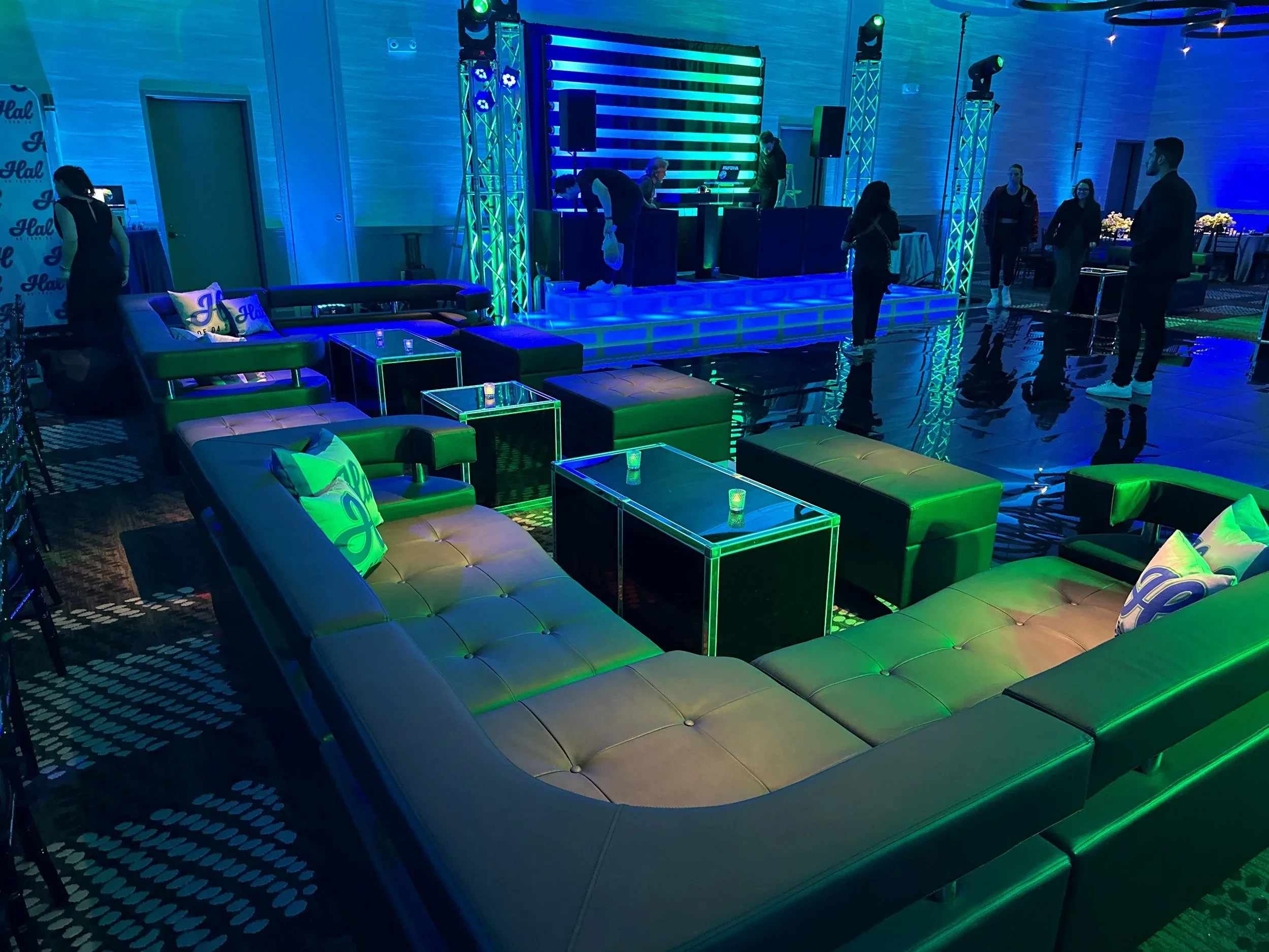 Give your guests a place to relax, recharge, and connect with a custom lounge setup. Comfortable lounge furniture — think sectional sofas, accent chairs, and coffee tables — creates a welcoming atmosphere that encourages conversation and relationship-building.